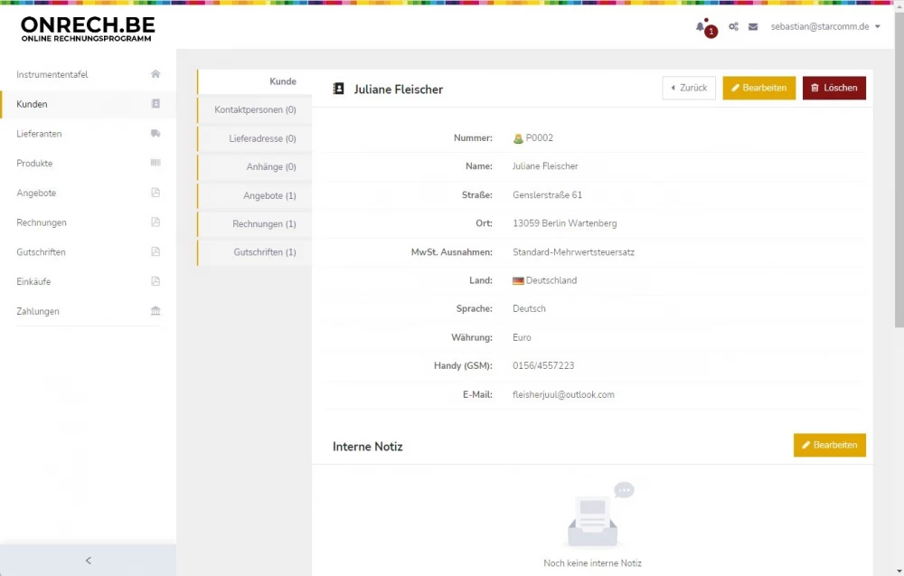 Rechnungen schnell erstellen und prüfen. Die Kundendaten werden automatisch ausgefüllt, die Rechnung erhält die entsprechende Nummer gemäß Ihrer Wunschnummer und der korrekten Mehrwertsteuerberechnung.