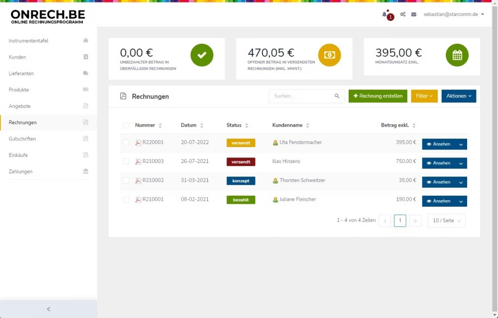 onRech versendet Rechnungen schnell und einfach per E-Mail.